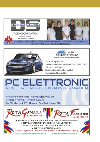 Via XXV Aprile, 2524030 ALMENNO SAN BARTOLOMEO (BG)Tel. e Fax : 035540271Email: info@autopellegrinelli.itwww.autopellegrinelli.it%u25cf IMBIACATURE %u25cf VERNICIATURE interne ed esterne%u25cf RIVESTIMENTI PLASTICI A CAPPOTTO%u25cf STUCCHI %u25cf VELATURE %u25cf SPUGNATI%u25cf DECORAZIONI VARIEVia D. Alighieri, 3 - 24030 ALMENNO S. BARTOLOMEO (BG)Email:info@rotaimbiancature.itwww.rotaimbiancature.it