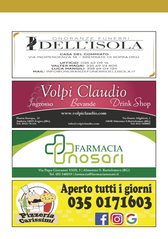 Piazza Europa, 22Ambria 24019 Zogno (BG)Tel. 0345/91324Via Dante Alighieri, 124030 Almenno S.Bartolomeo (BG)Tel. 035/548002www.volpiclaudio.cominfo@volpiclaudio.comVia Papa Giovanni XXIII, 3| Almenno S. Bartolomeo (BG)Tel. 035 540019| farmacia@farmacianosari.it